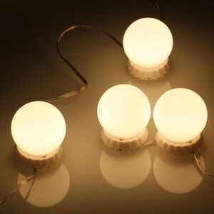 La surface lisse de l’ampoule vous offre une lumière blanche plus douce.Excellentes LED SMD2835 haute luminosité, vous prouvant un bon éclairage, une lumière sans scintillement et anti-éblouissante sans stroboscopes ni rayonnement, elle peut garder vos yeux loin de l’épuisement.Il est alimenté par un chargeur USB, une banque d’alimentation USB ou un ordinateur portable, il est donc pratique lorsque vous souhaitez l’utiliser.Il est équipé d’une fonction de mémoire, enregistrant le dernier mode d’éclairage lorsque vous l’utilisez et c’est le même mode d’éclairage lorsque vous l’utilisez à nouveau.5 niveaux de luminosité réglables en appuyant sur l’interrupteur, répondant à vos différents besoins dans diverses circonstances.Corde extensible, vous pouvez choisir la longueur nécessaire pour bricoler la forme du miroir.Rubans adhésifs solides pour fixer les ampoules, aucun dommage à vos meubles.Vous pouvez concevoir la lampe dans votre forme préférée avec les rubans adhésifs fournis pour rencontrer différentes formes de miroir.Facile à installer, il suffit de brancher et de profiter.Être largement utilisé dans les vestiaires, les salons, les salons de coiffure, etc.
